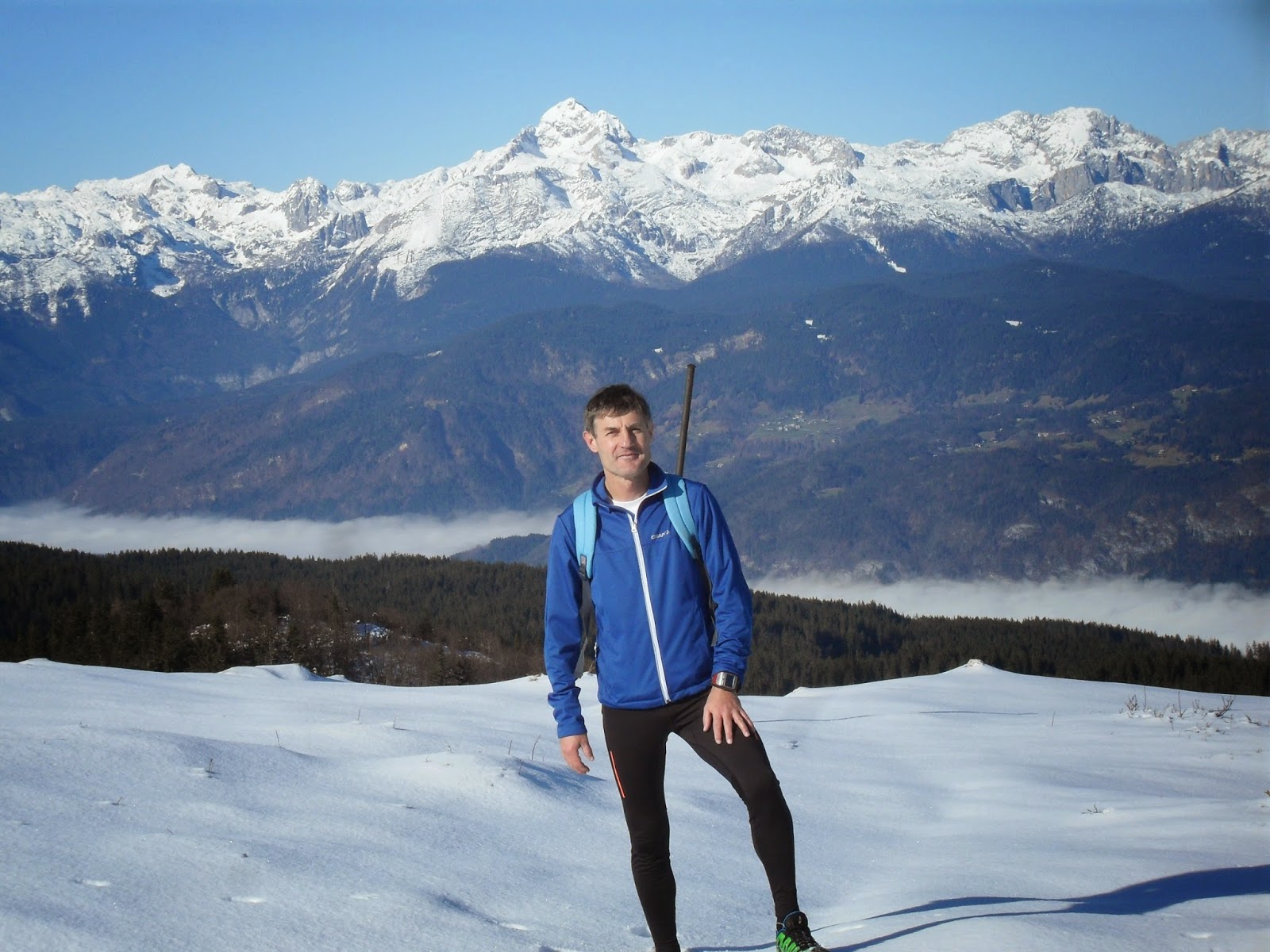 2 uri 20 min do Ratitovca, pavza, 1 uro 20 min z Ratitovca na Soriško planino, torej 3 ure 40 minut hoje/teka. Slednjega danes ne prav veliko...